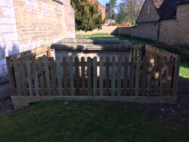 Wooden fence erected around the Addy Tomb in St Andrew's Churchyard (closed) to make safe.