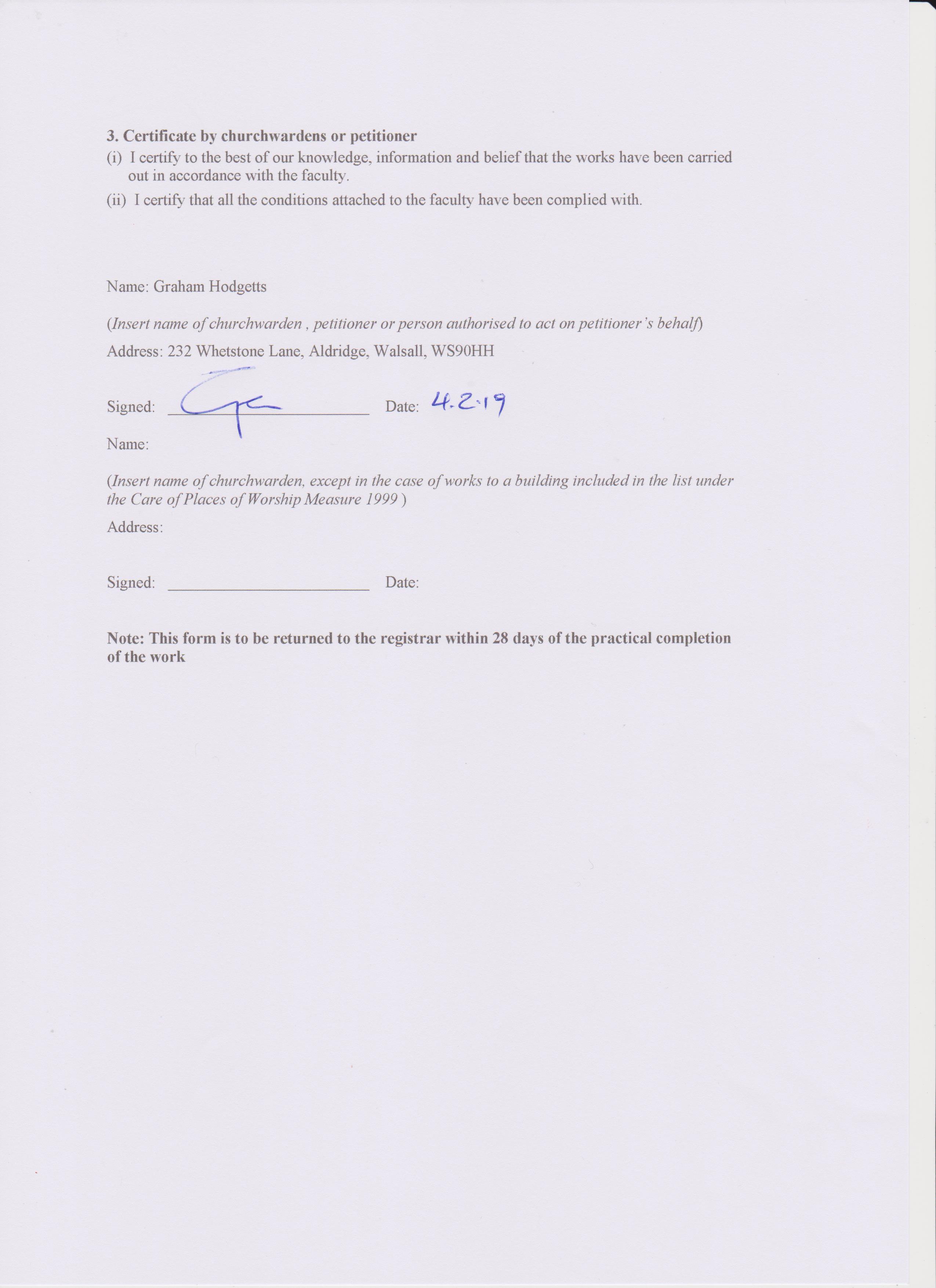 page 2 Completion certificate signed