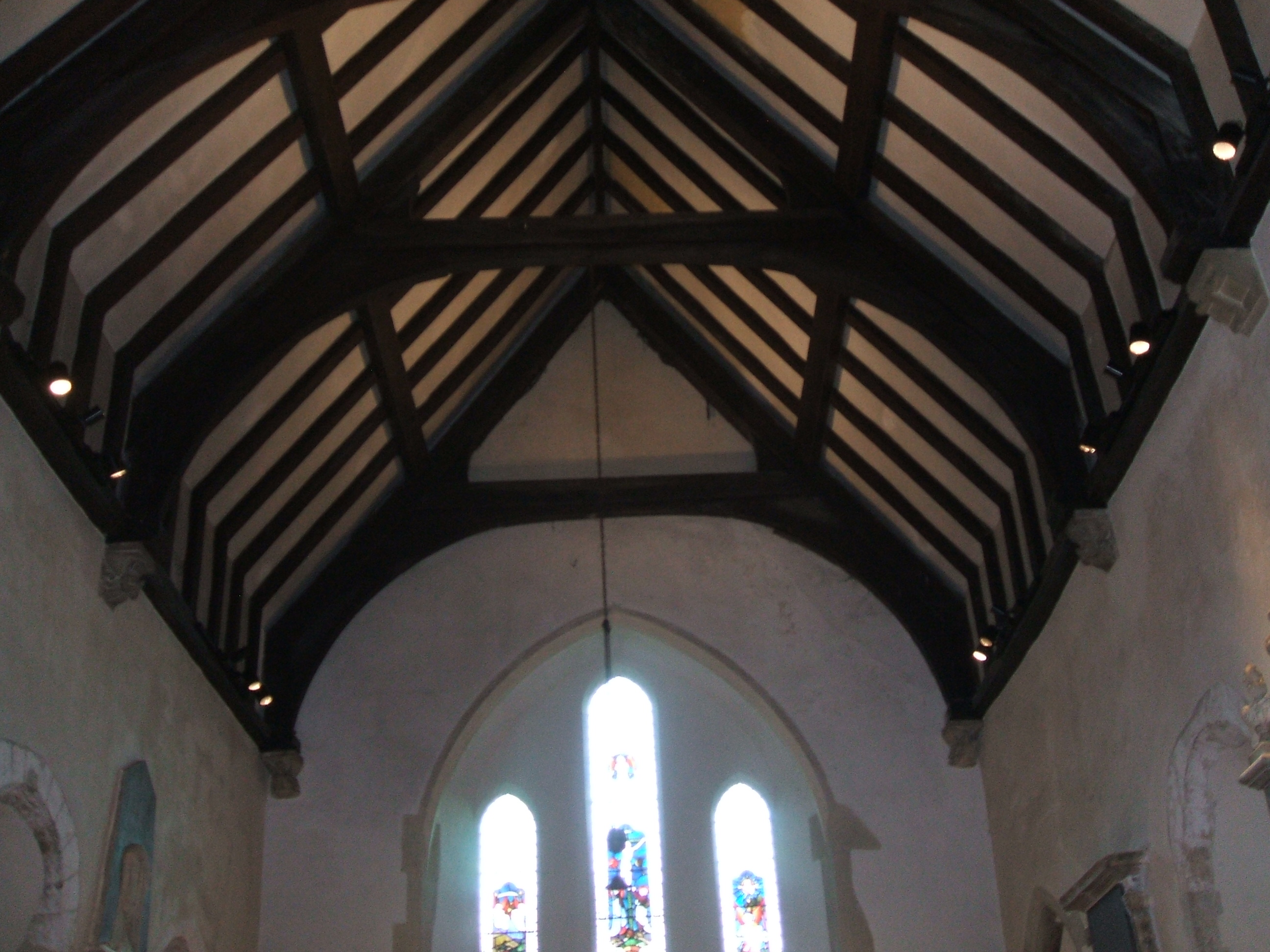 New led spotlights on wall plate illuminating nave and roof