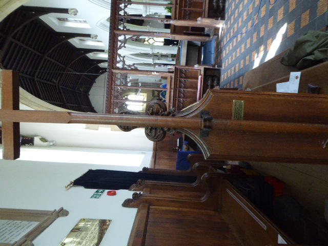 Photograph shows position of plaque next to processional cross.