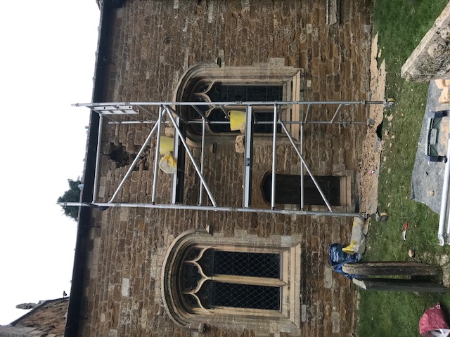 Chancel wall during repair work