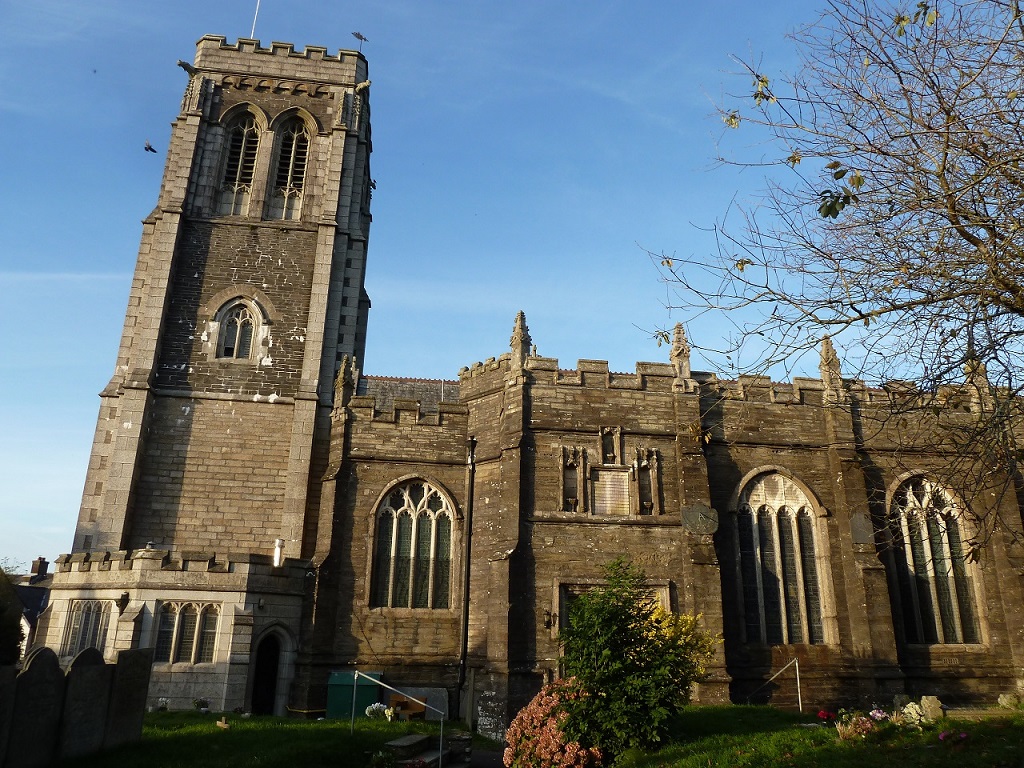 The church from the south-west part of the churchyard, showing the west tower and part of the south aisle