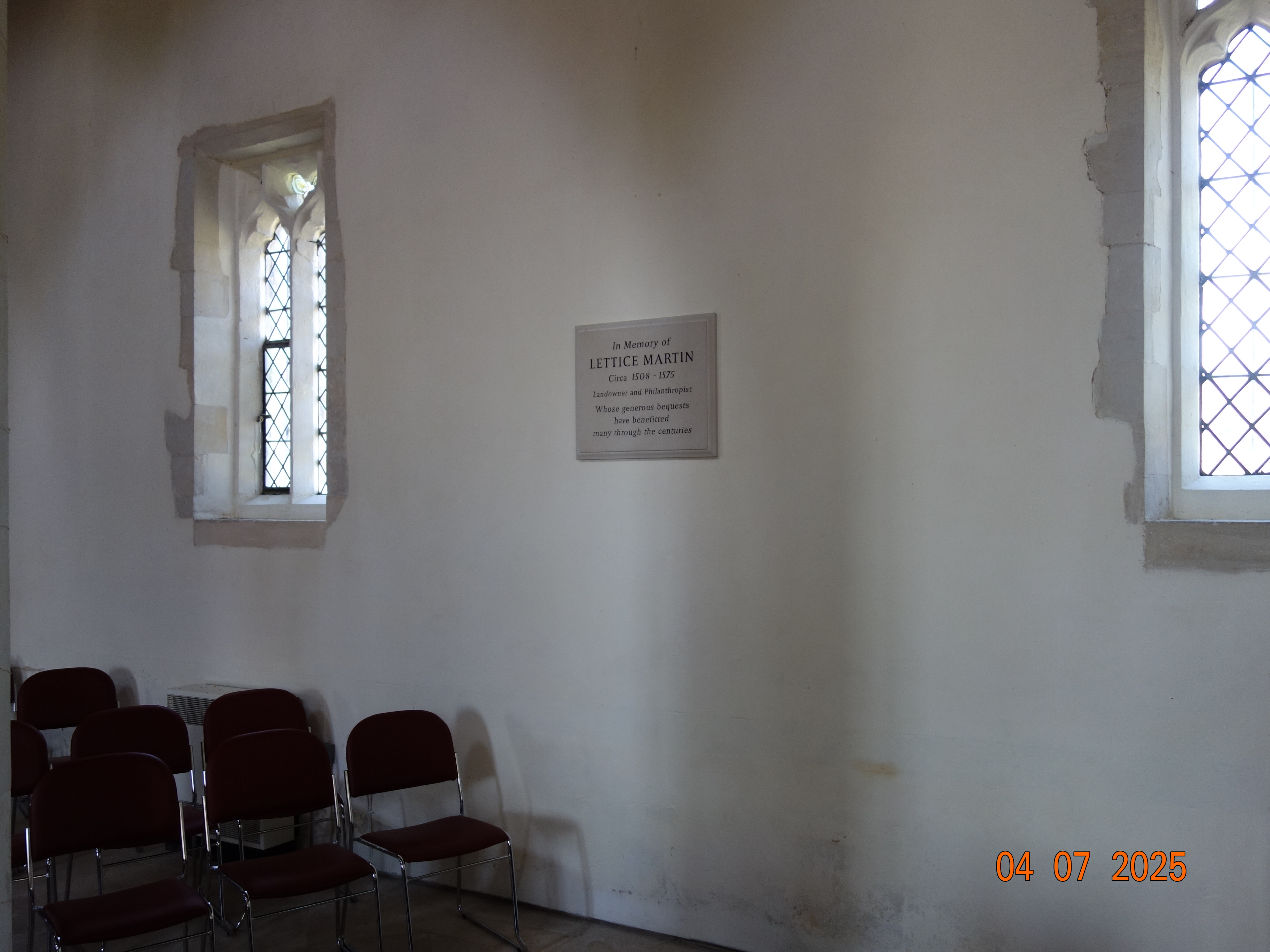 Chrishall Church Lettice Martin Memorial Plaque Photographs
