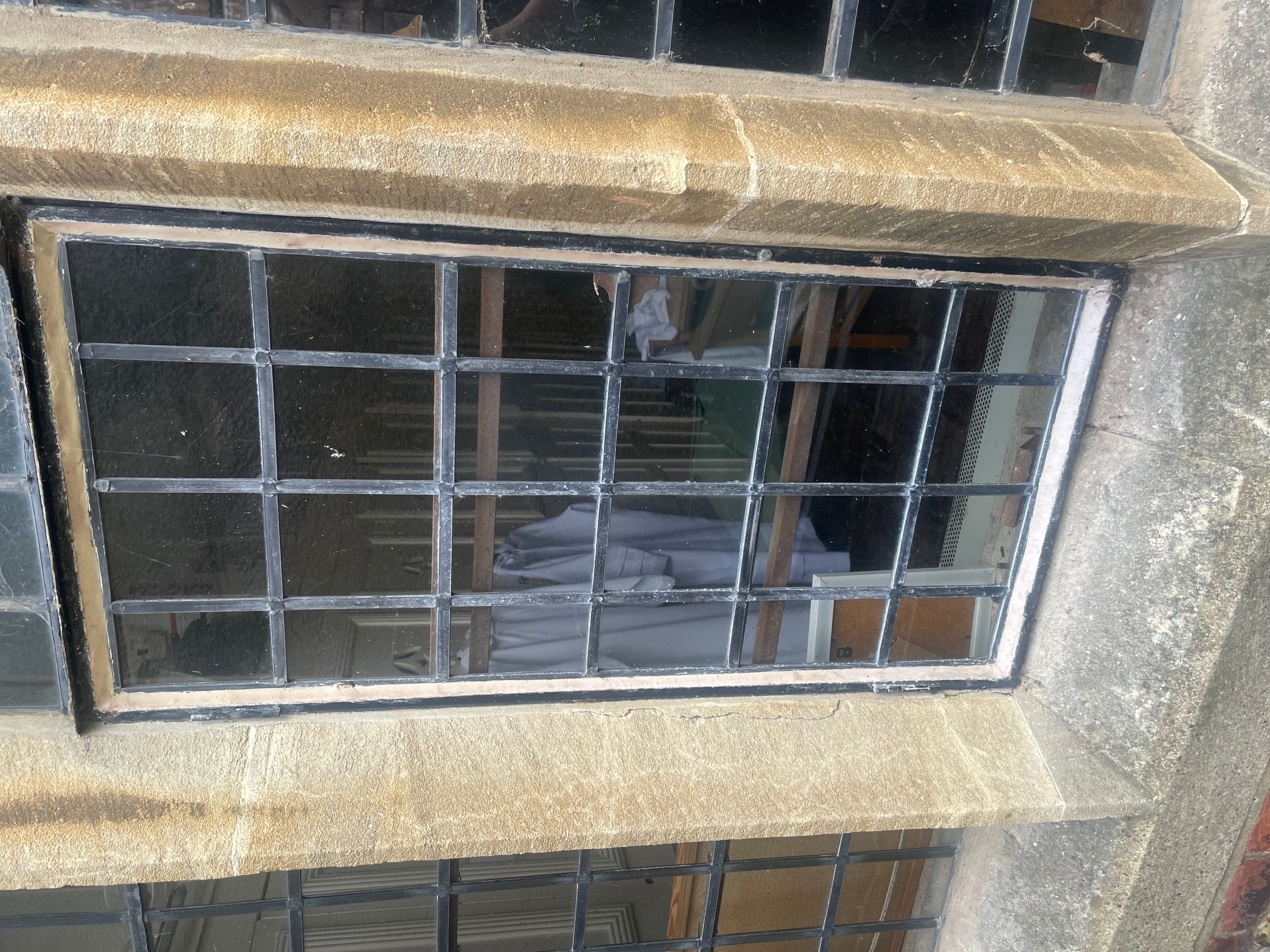 Image showing the new repaired casement window in the servers' vestry window.