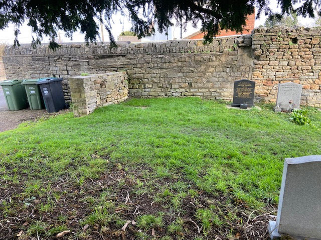 Gap in churchyard wall Feb 2025.jpg 24/02/2025 11:44:34Ancient gap in churchyard wall ajacent to new area. The gap is no longer used and will be filled by an experienced stonemason to match the wall on either side.