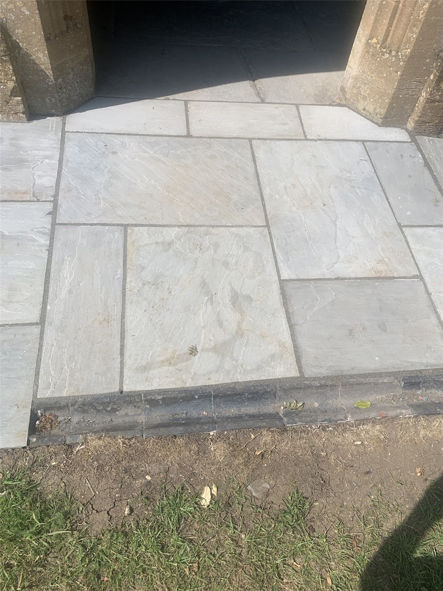 Summary: Installation of a "Catherine Wheel" mosaic outside the south porch