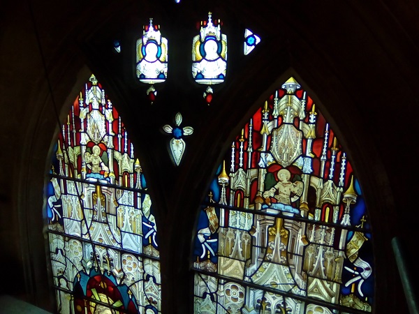Top two panels on both windows were repaired and re-leaded